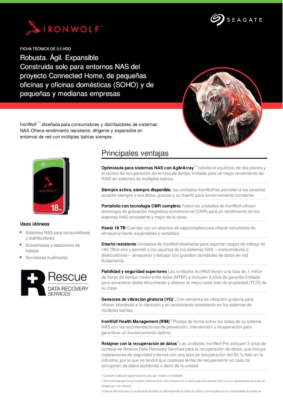 • Siempre activa, siempre disponible, las unidades IronWolf les permiten a los usuarios acceder siempre a sus datos, gracias a su diseño para funcionamiento constante.