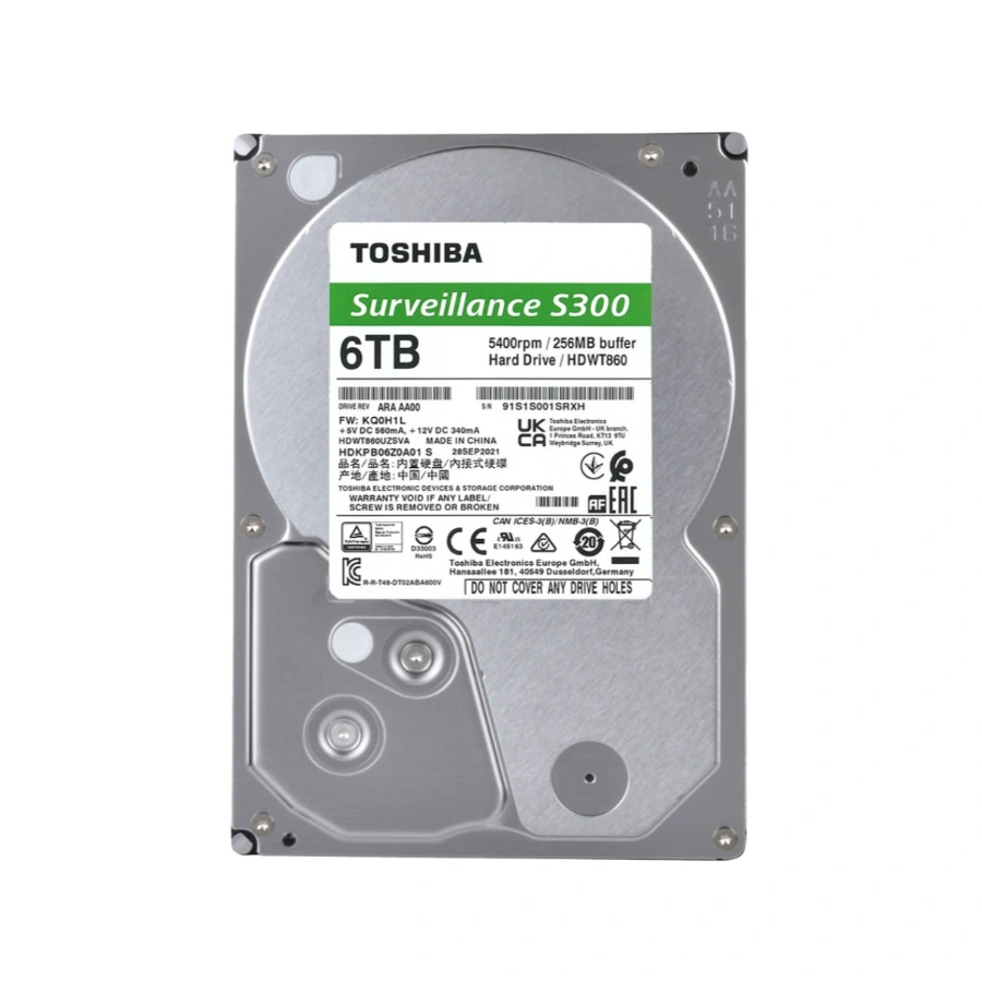 Disco Duro TOSHIBA Surveillance S300 / 6TB / 3.5” / SATA 6 Gbit/s / 5400 RPM / 256 MB Caché
