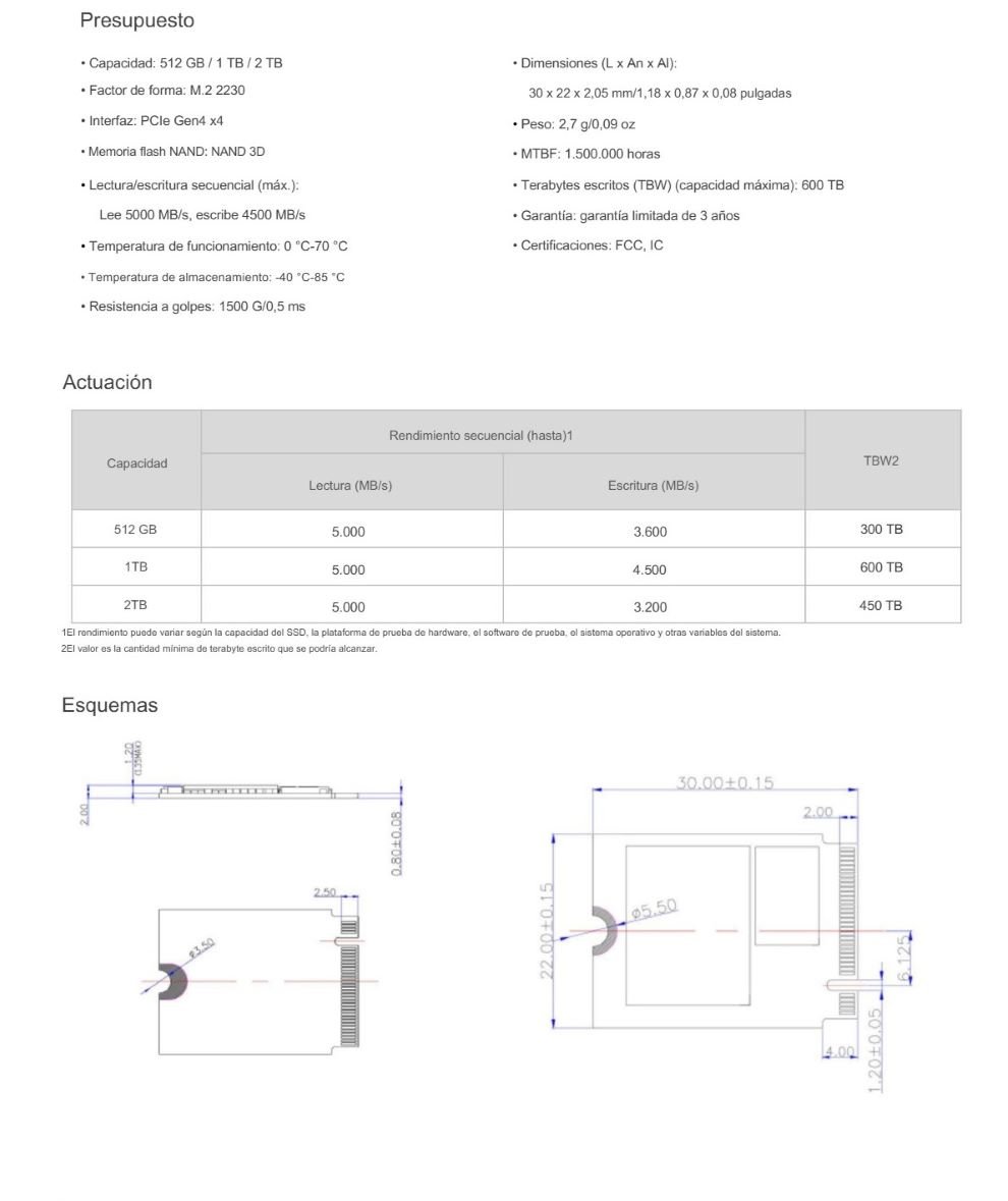 • Capacidad de lectura y escritura de hasta 5.000/4.500 MB/s