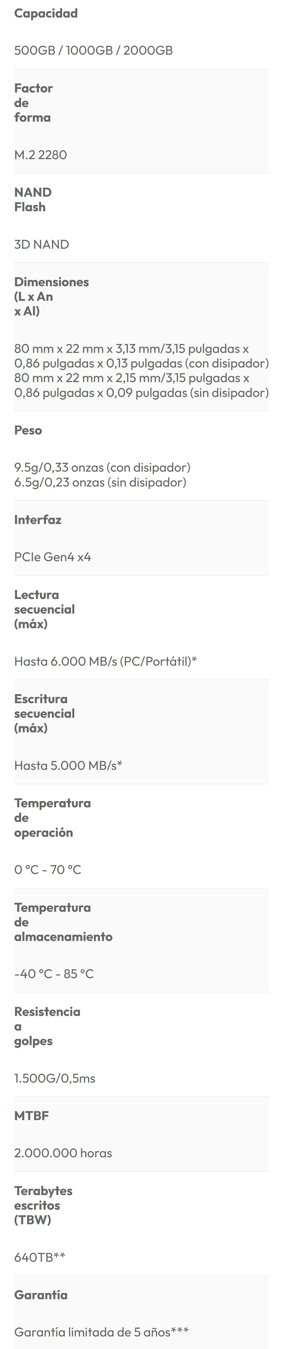 • Velocidad de lectura: 5000 MB/s