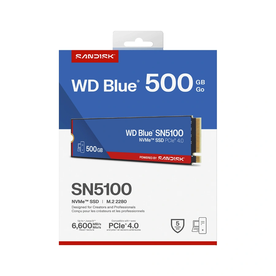 Unidad SSD M.2 NVMe WESTERN DIGITAL Blue SN5100 – 500GB, M.2 2280, PCIe 4.0 X4, Lectura 6600 MB/s, Escritura 5600 MB/s