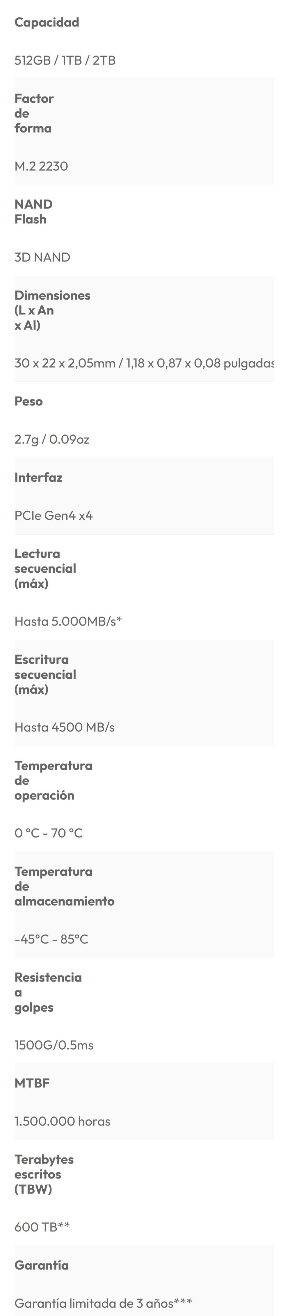 • Capacidad de lectura y escritura de hasta 5.000/4.500 MB/s
