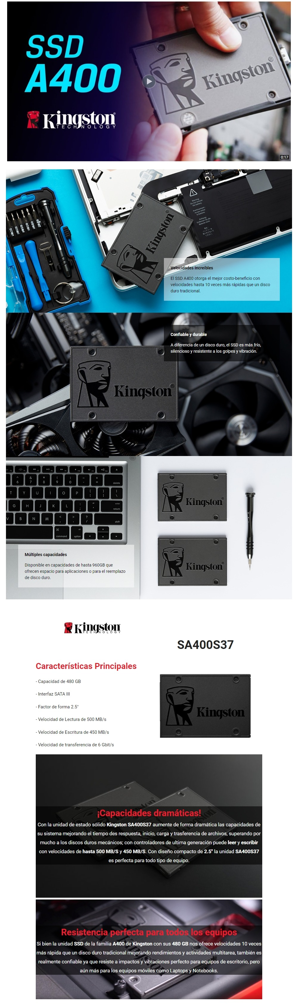 Sé el primero en valorar “Unidad De Estado Solido SSD KINGSTON Technology A400 480GB / SATA III / 6 Gbit/S / Lectura 500MB/S / Escritura 450MB/S / 2.5″”