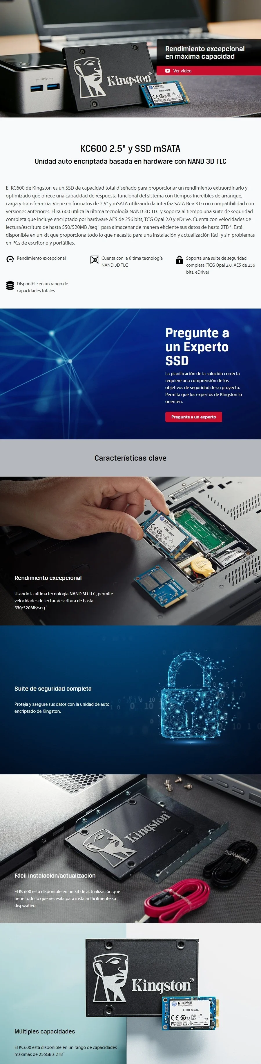 Unidad De Estado Solido SSD Kingston Technology Kc600 / 2048GB / Sata III / 2.5″ / Lectura 550MB/S, Escritura 550MB/S / SKC600/2048G