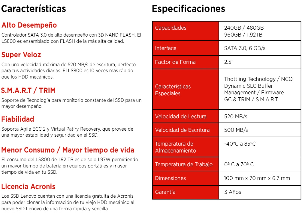 Unidad De Estado Solido SSD LENOVO LS800