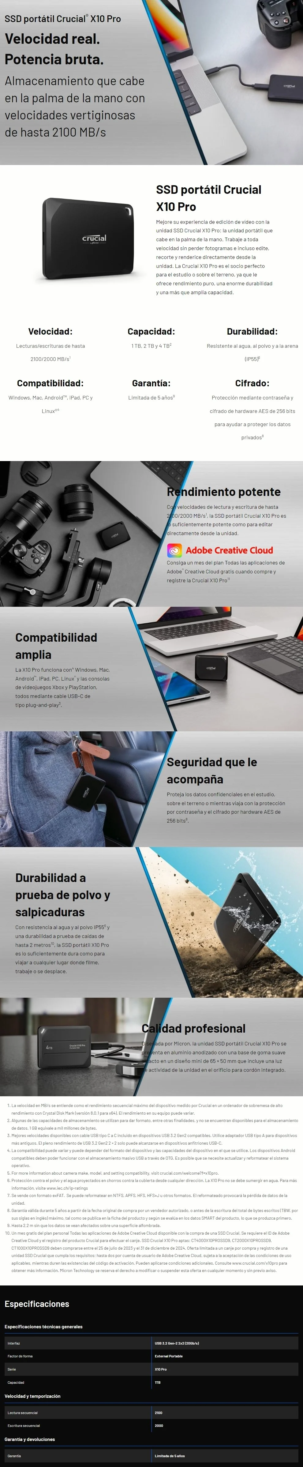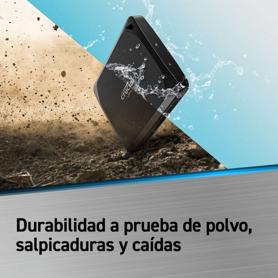 SSD Externo CRUCIAL X10 Pro 1TB / Hasta 2100 MB/s / Certificación IP55 / Resistencia Al Agua Y Al Polvo / USB 3.2 Gen-2 2×2 (20Gb/s)