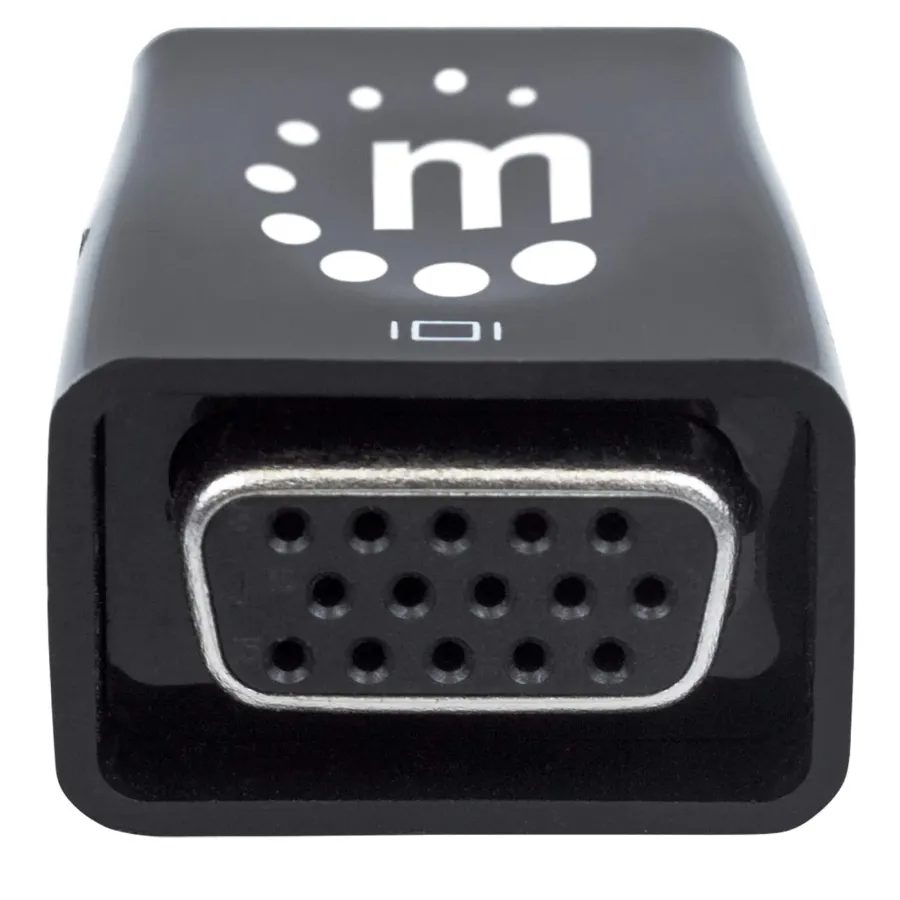 El Micro Convertidor HDMI a VGA Manhattan establece un enlace rápido, simple y conveniente entre un equipo de escritorio equipado con HDMI, computadora portátil u otra fuente de medios de comunicación y un monitor VGA existente, proyector u otro dispositivo de visualización. El Micro Convertidor HDMI a VGA Manhattan es fácil y rápido de instalar y no requiere ninguna instalación o configuración complicada. Este conversor ayuda a prolongar la vida útil de los equipos de pantalla VGA para que puedan obtener el máximo rendimiento de su inversión. El Micro Convertidor HDMI a VGA Manhattan ofrece una solución de bajo consumo, rentable y fiable para que los usuarios puedan realizar la transición a las resoluciones y anchos de banda HDMI, la Profundidad de Color y mucho más. Además para evitar el gasto de comprar costosos monitores o proyectores. Su diseño integrado todo en uno ayuda a lograr una solución compacta e integrada que elimina cables innecesarios, los enredos y el desorden para así mantener las instalaciones y los espacios de trabajo limpios y ordenados. Su puerto estéreo de 3,5 mm permite al convertidor transmitir audio a un dispositivo de audio externo, y su puerto Micro-USB permite una alimentación adicional si es necesario.