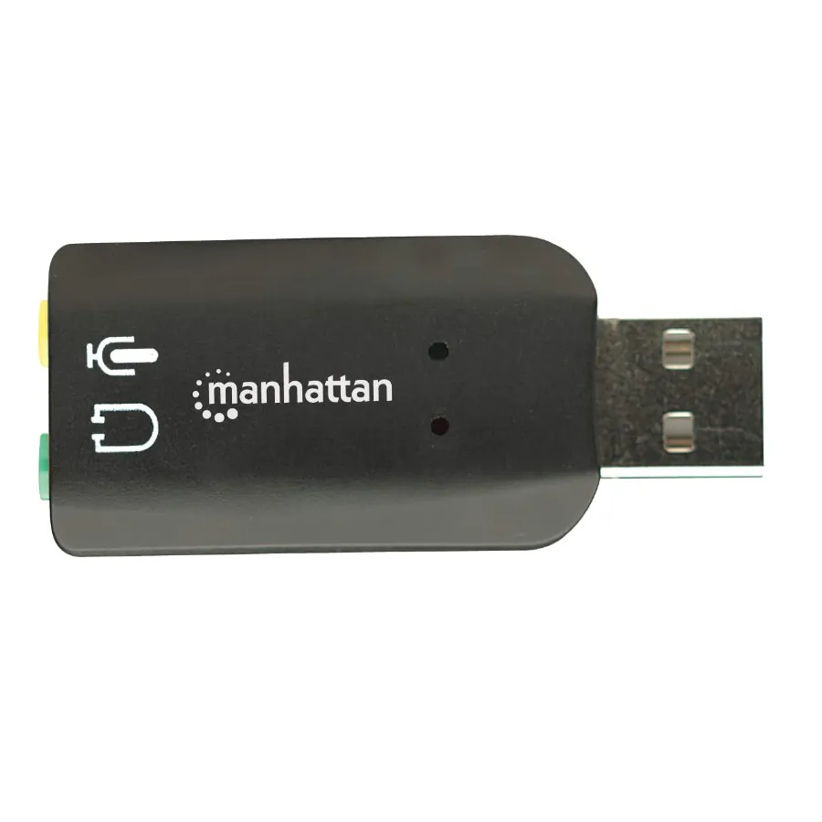 Conecte, escuche y disfrute del mejor desempeño en audio con la conveniencia de USBIdeal para computadoras, portátiles y mini portátiles, el Adaptador de Audio 3D USB de Alta Velocidad MANHATTAN crea de manera instantánea una conexión de micrófono y salida de audio a través de cualquier puerto USB. Conecte con facilidad auriculares, micrófonos y altavoces con cables de 3.5 mm en posiciones difíciles de alcanzar. Instalación Plug and Play y capacidad hot swap reemplaza con facilidad las tarjetas de sonido inservibles o dañados mejorando su acceso sin necesidad de controladores especiales o de software. Un amplificador integrado Clase B utiliza una conexión USB alimentada por bus, eliminando la necesidad de conectar alimentadores externos o cables adicionales. Soporta audio tridimensional y sonido ambiental 5.1 virtual con efectos de sonido y ecualizador de 10 bandas proporcionando experiencias de alta calidad con funcionalidad y conveniencia USB.