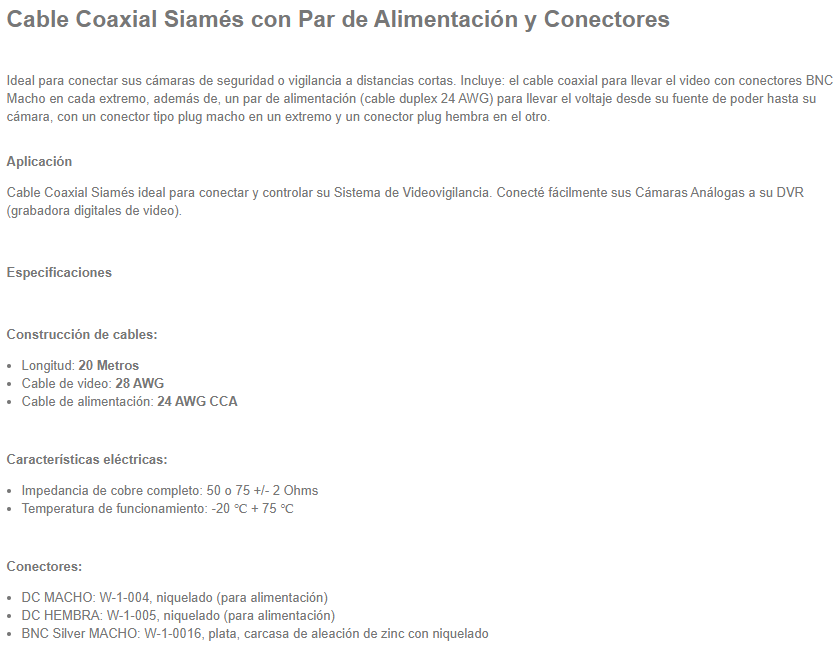 Sé el primero en valorar “Cable Para Cámara de Seguridad SAXXON WB0120C / Video y Energía / Hasta 8 Megapíxeles / 20 M / Interior / Cobre / Negro”