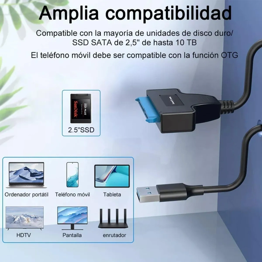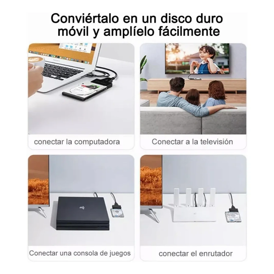 Compatible con HDD y SSD de 2,5 pulgadas para fácil expansión de almacenamiento portátil.