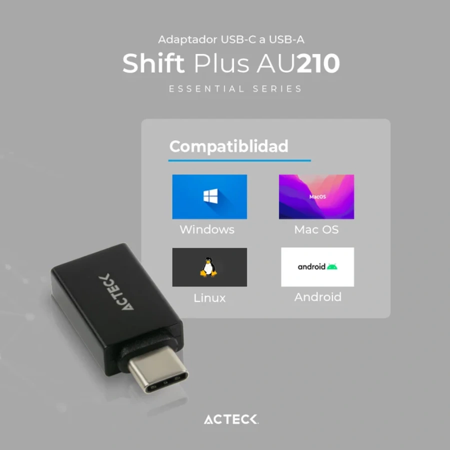Adaptador ACTECK Shift Plus AU210 / USB C – USB A / Tipo Dongle OTG Macho A Hembra / Color Negro