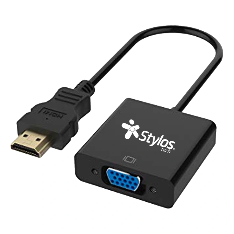Adaptador De Video STYLOS TECH / VGA-HDMI / Con Audio 3.5mm / Macho A Hembra / Negro