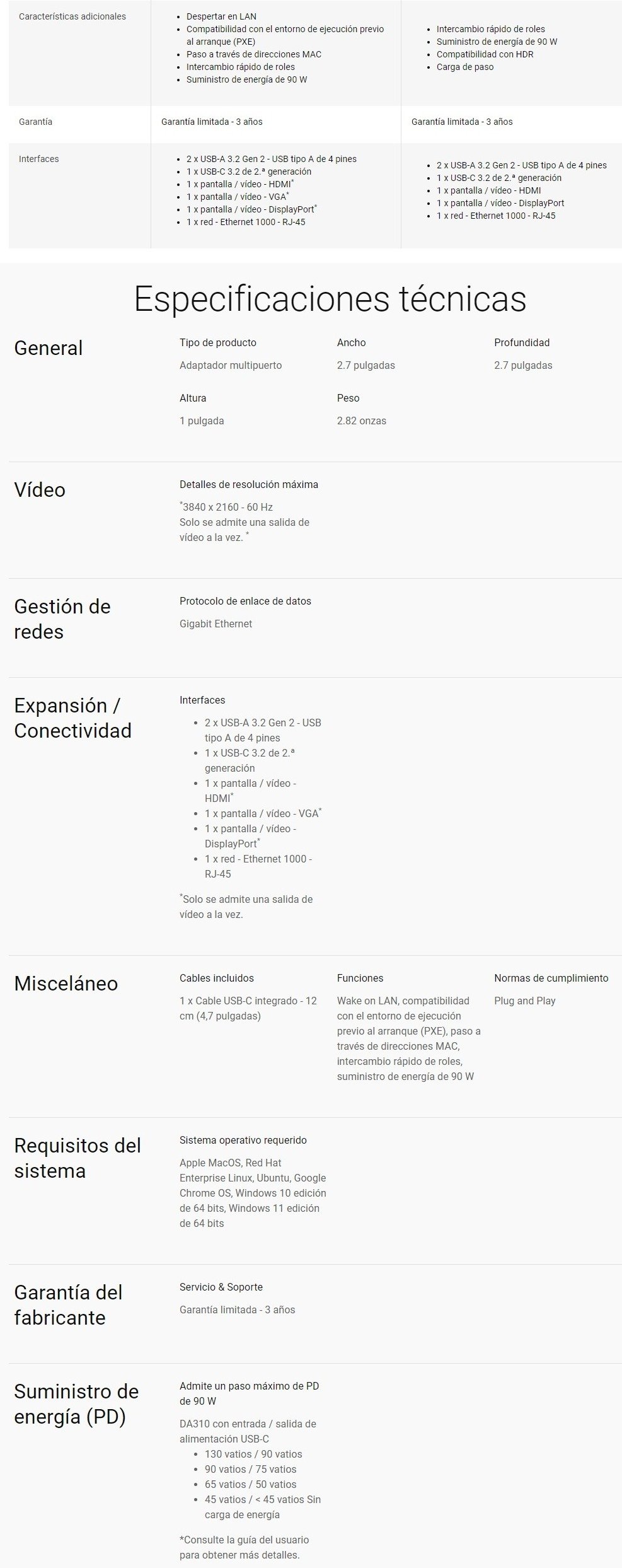 Sé el primero en valorar “Adaptador Multipuerto USB-C De DA310 / 7 En 1 / 2X USB-A, 1X USB-C, HDMI, VGA, DisplayPort, RJ-45 / Portátil / Plug Y Play / Gris”