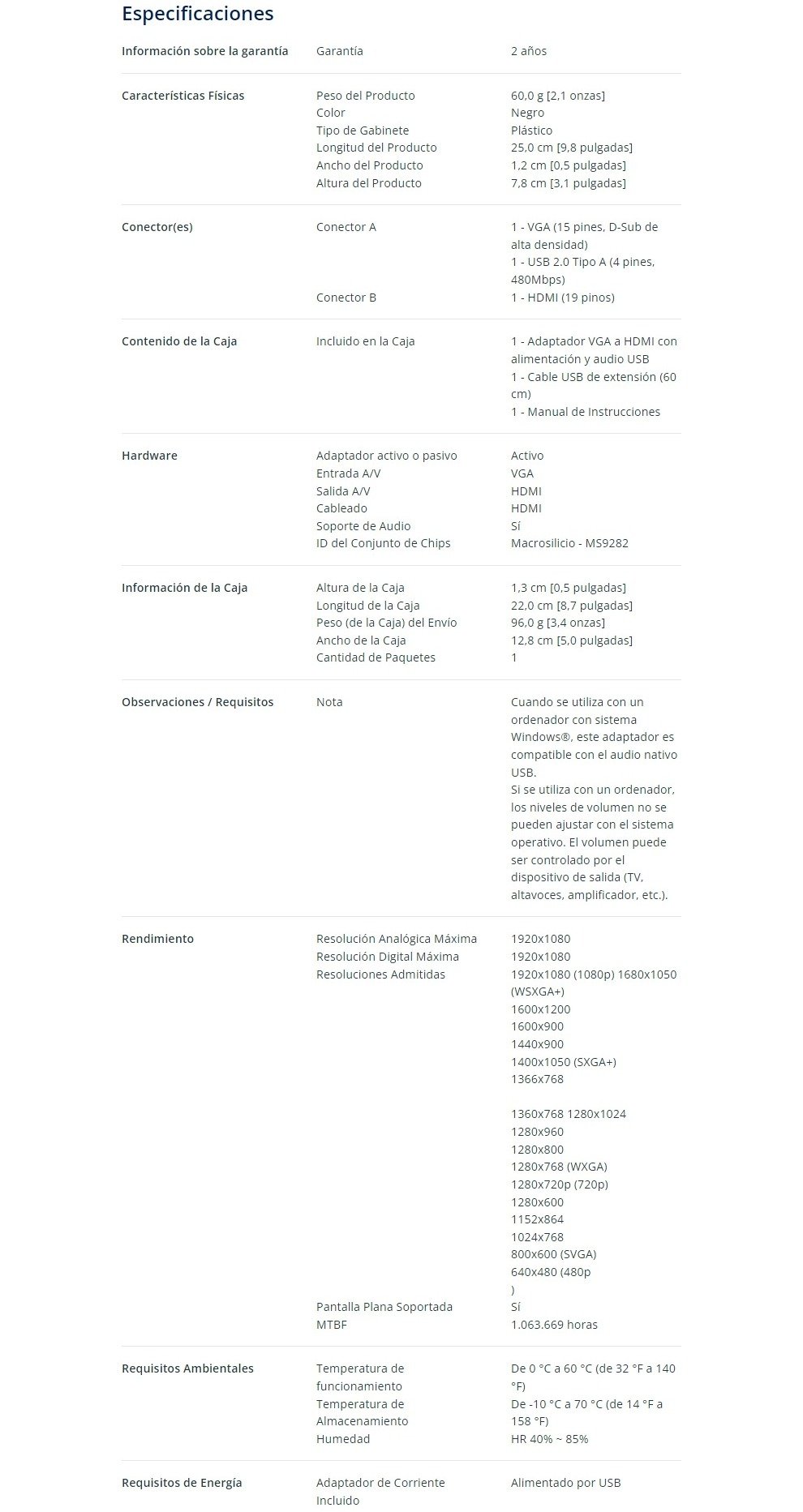• Convierta una señal VGA de una computadora portátil o de escritorio a HDMI (con alimentación USB)