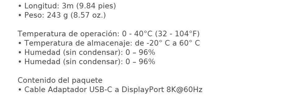El Manhattan Cable DisplayPort Macho – USB C Macho es un cable de alta calidad diseñado para transferir señales de video y audio desde dispositivos con puerto USB Tipo C a pantallas o monitores equipados con puertos DisplayPort. Con una longitud total de 3 metros, este cable ofrece suficiente espacio para conectar los dispositivos sin restricciones.