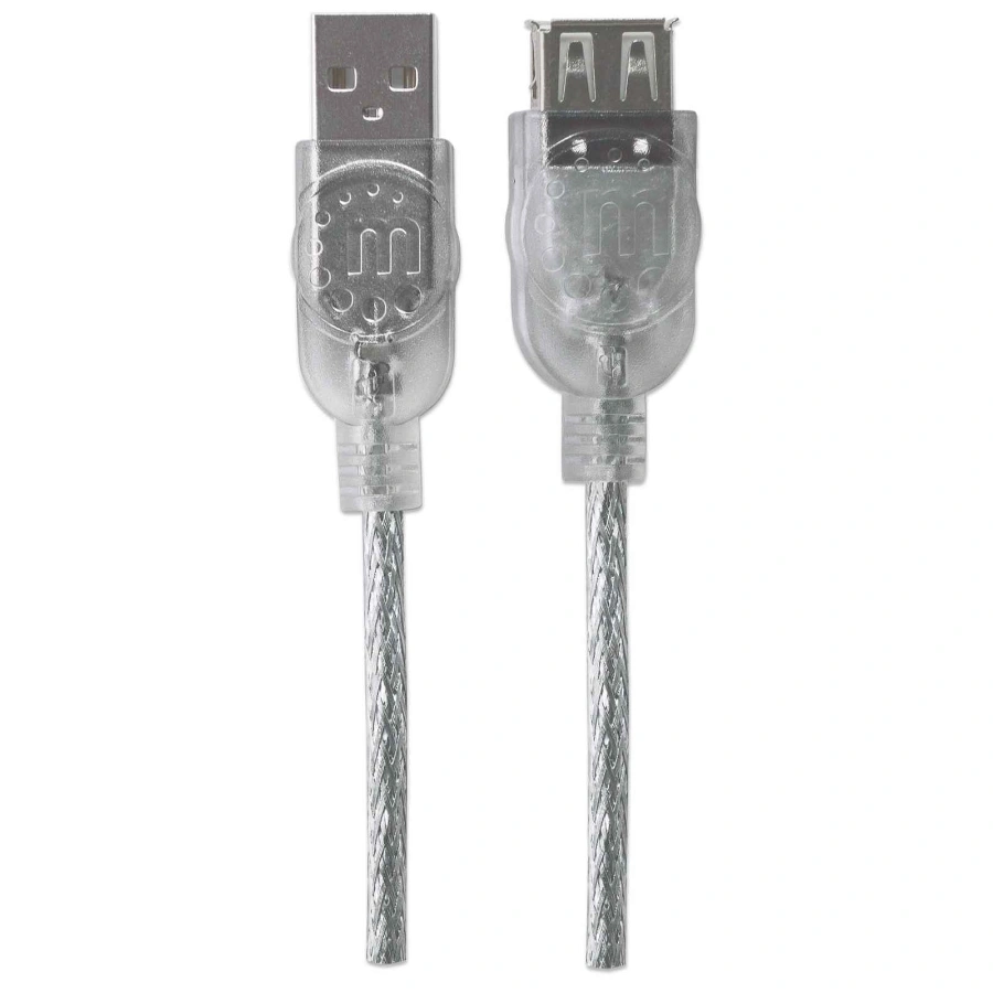 Cable De Extensión USB MANHATTAN 340496 / USB 2.0 De Alta Velocidad / Macho A Hembra / 480Mbps / 3 Metros / Plateado