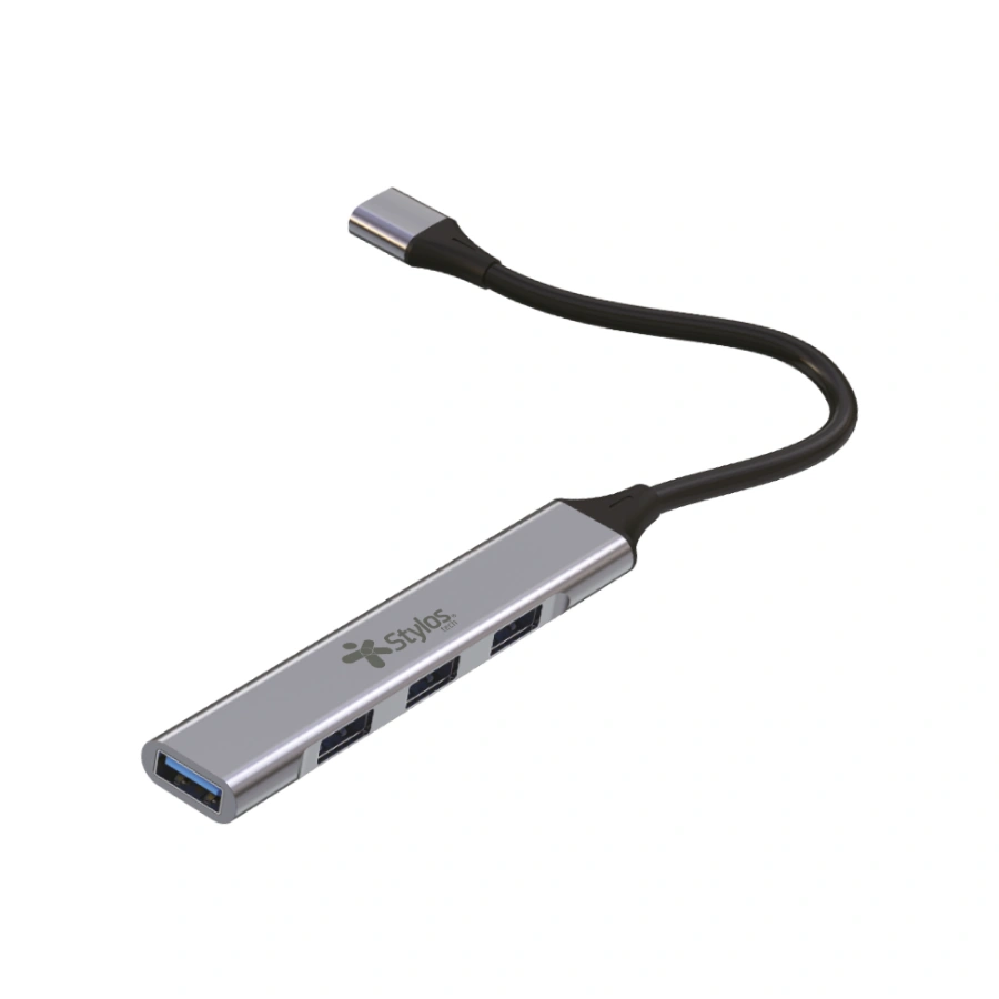 Hub STYLOS HB002 / Entrada USB Tipo C / X3 Puertos USB 2.0, 1 Puerto 3.0 / Velocidad 480 Mbit/s / Plata / STCBHUB42G