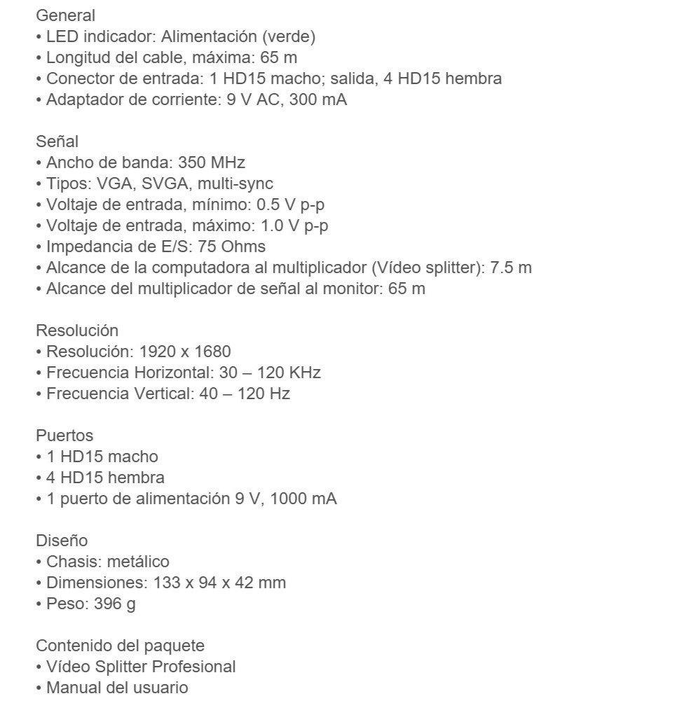 • Multiplica una fuente de señal VGA en hasta cuatro salidas VGA