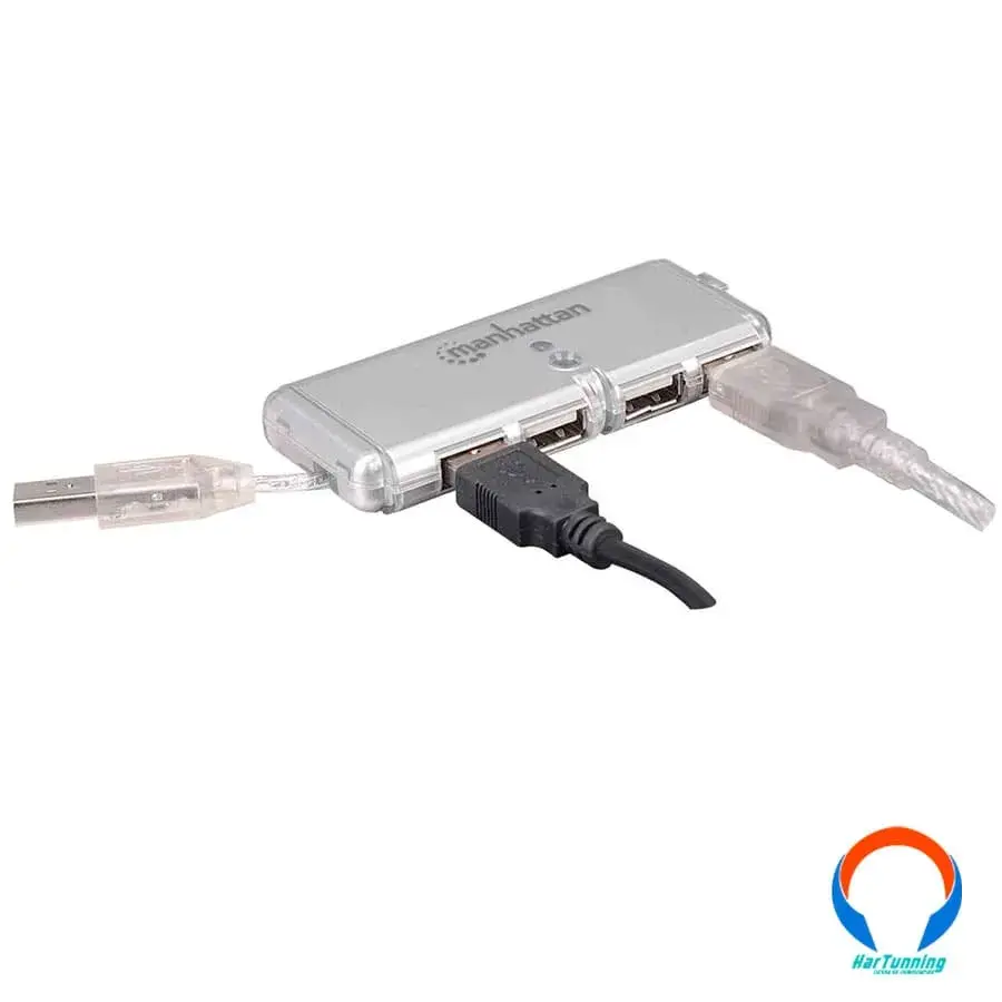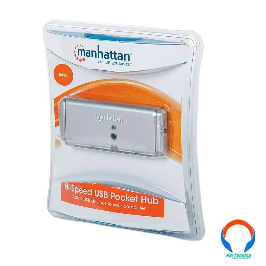 Hub Usb Manhattan Pocket / 4 Puertos / Velocidades De Transferencia 1.5/12/480 Mbps / Gris