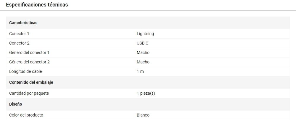Cable Lightning ADATA / Lightning – USB Tipo C / 1 Metro / Alta Eficiencia / Cobre Estañado / Blanco