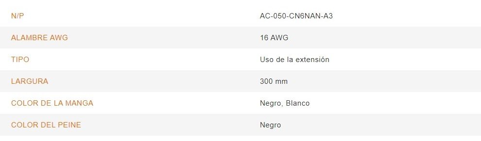 • Incluye peines de cable (4 unidades cada cable)