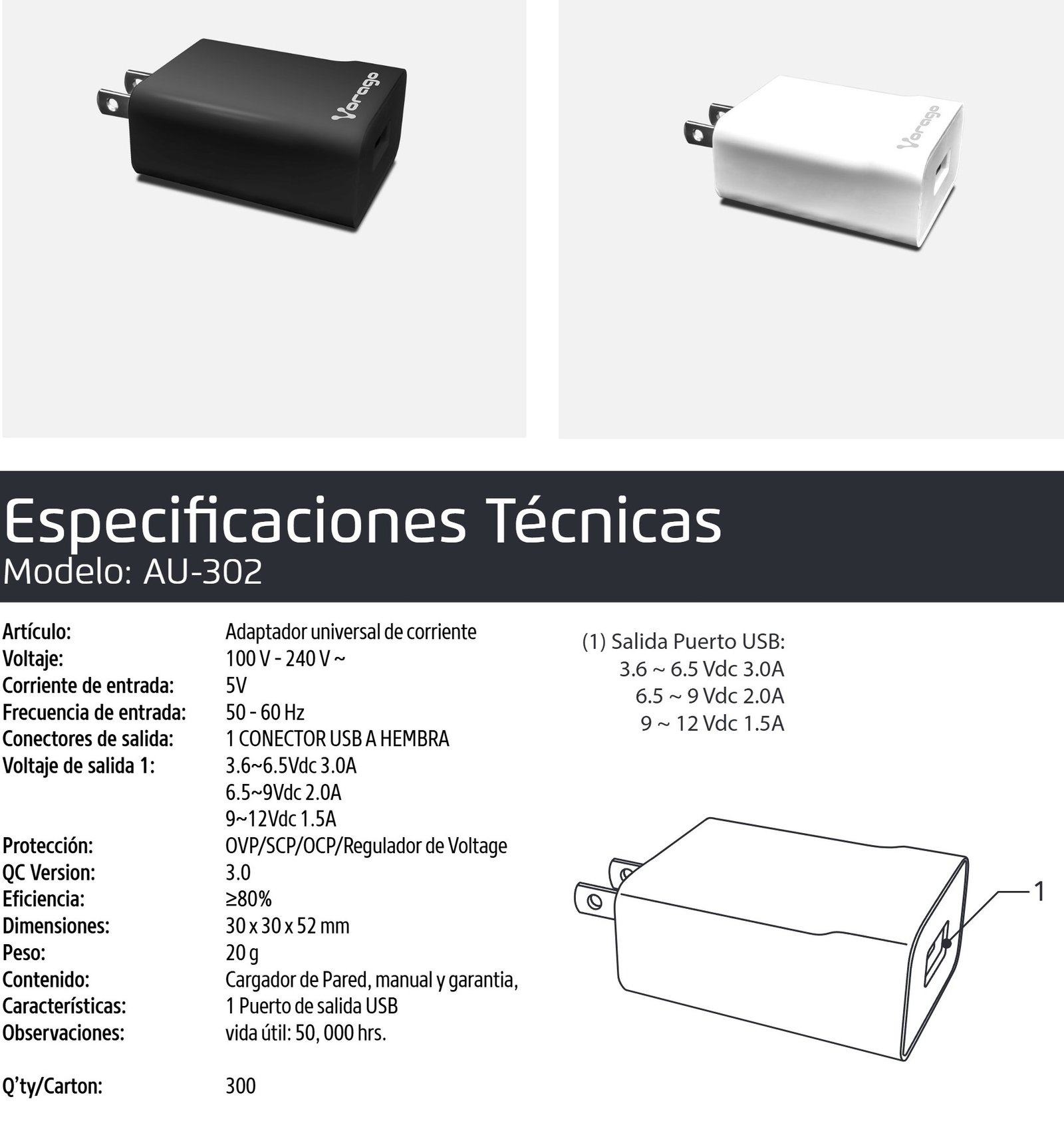Cargador De Pared VORAGO AU-302