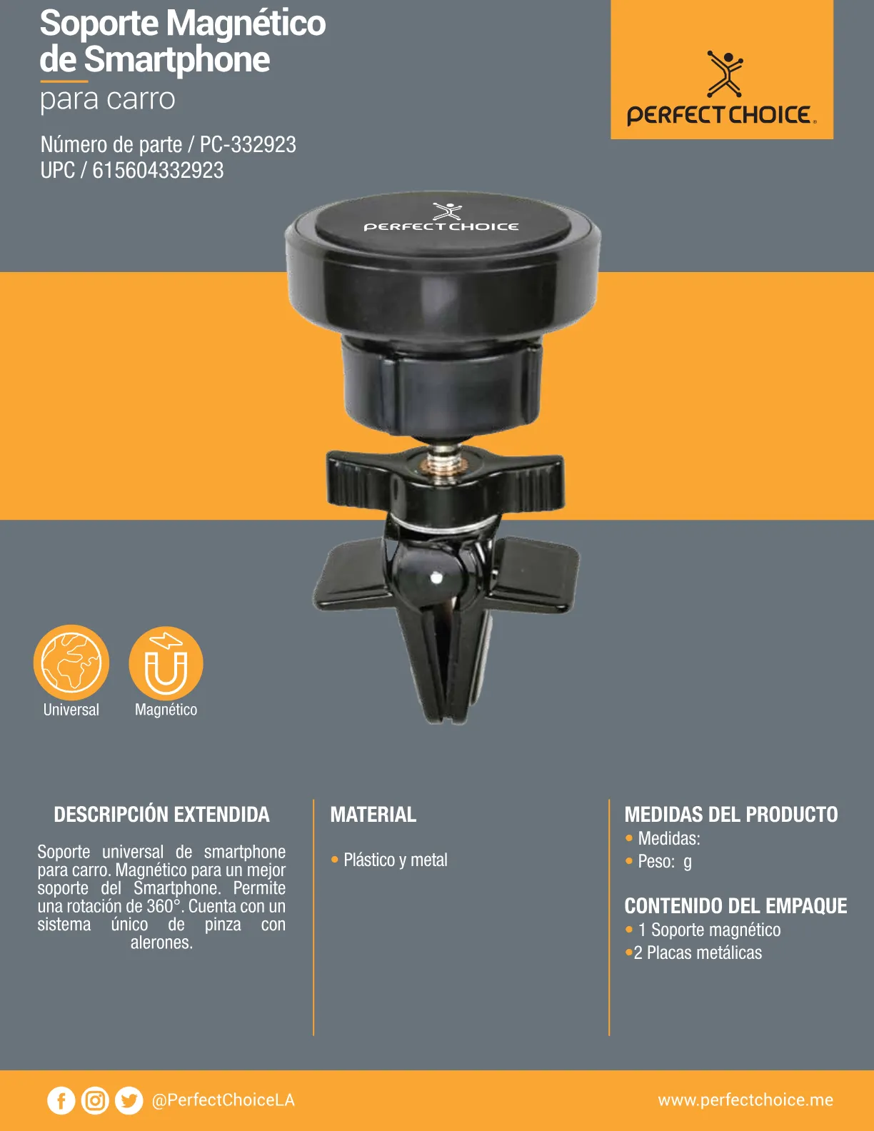 Soporte Magnético Para Carro PERFECT CHOICE / 360° / 7.7 X 4.3 Cm / Negro