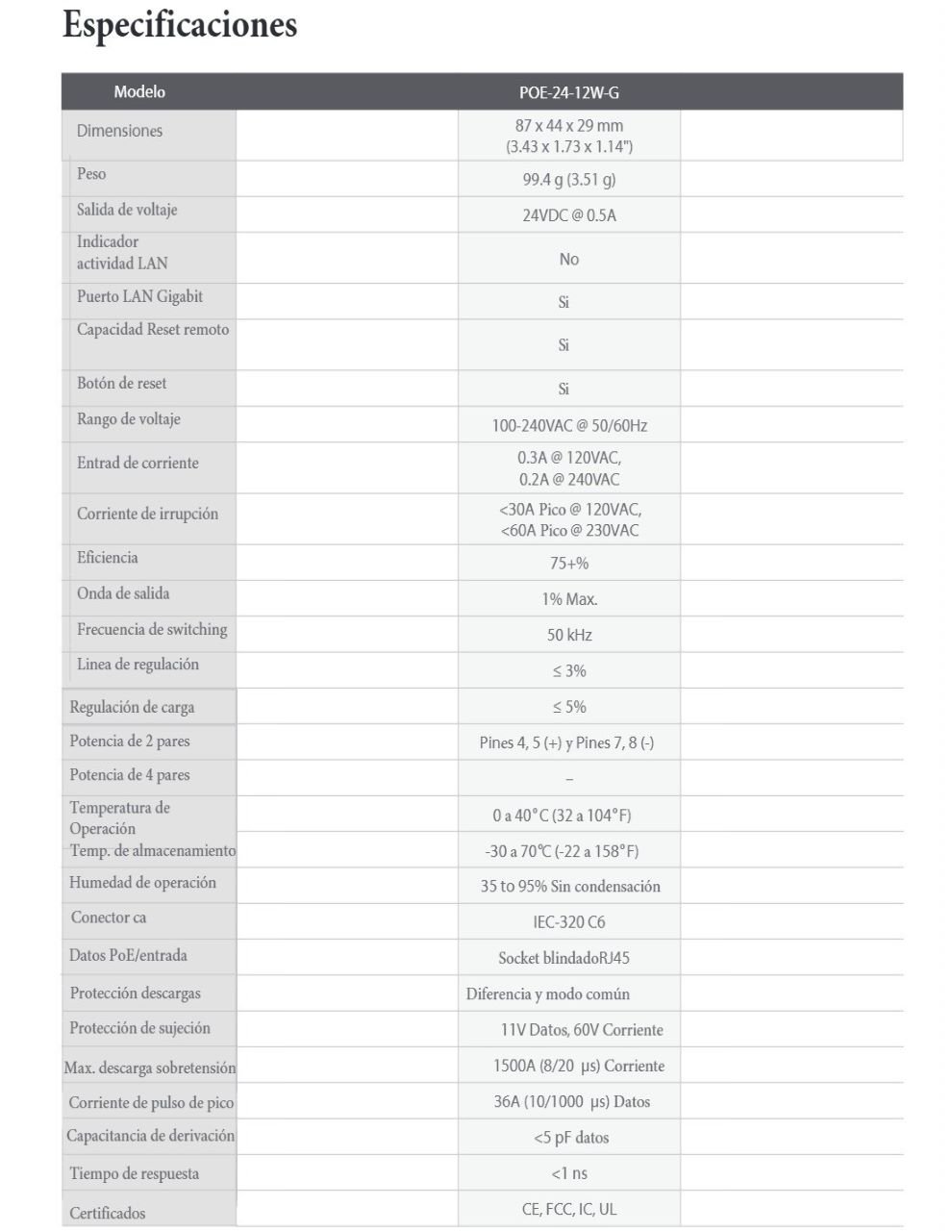 SKU: POE-24-12W-G-WH Categoría: