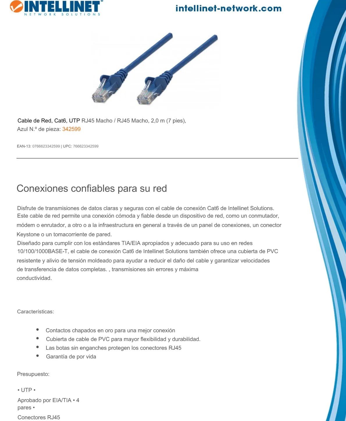 Sé el primero en valorar “Cable Patch INTELLINET / Cat6 UTP / RJ-45 Macho – RJ-45 Macho / 2 Metros / 7FT / Color Azul”
