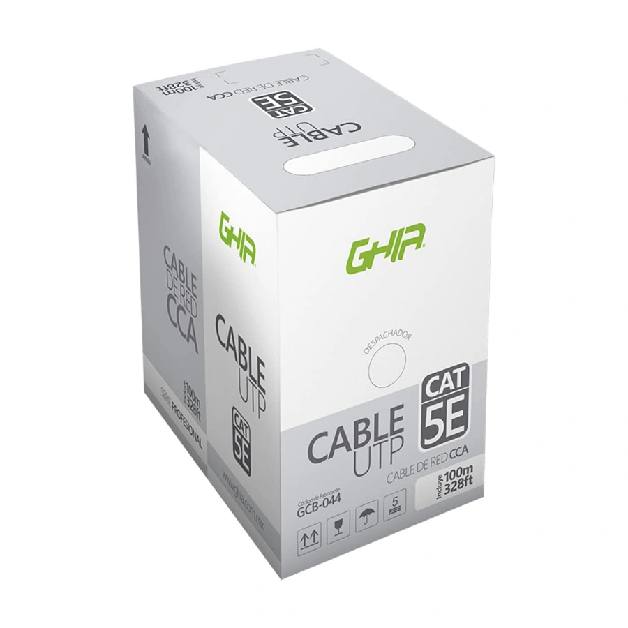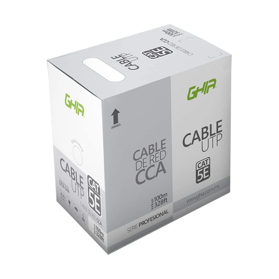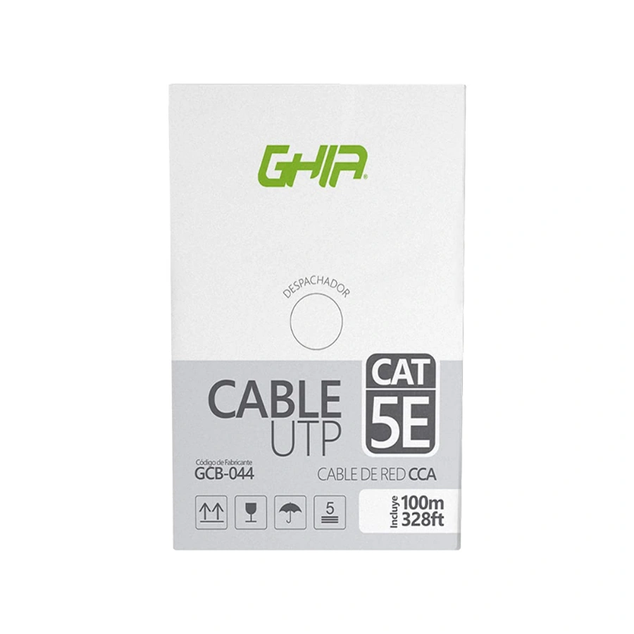 CABLE UTP GHIA GCB-044 / CAT 5E / Calibre 24 AWG / Certificación CE / ROHS / 100Mtrs / Gris