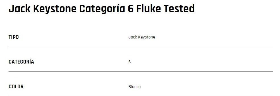 Jack RJ-45 tipo Keystone de Categoría 6 Fluke Tested. Para paneles de parcheo o placas.