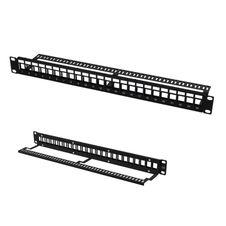 Panel de Parcheo NITROTEL / 1U / Montaje en Bastidor / 24 Puertos RJ45 / CAT6, CAT5E / Negro