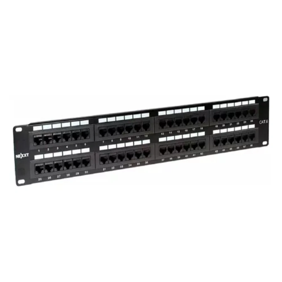 Panel de Parcheo NITROTEL NTPPC648U / 2U / Montaje en Bastidor / 48 Puertos RJ45 / CAT6 / Negro