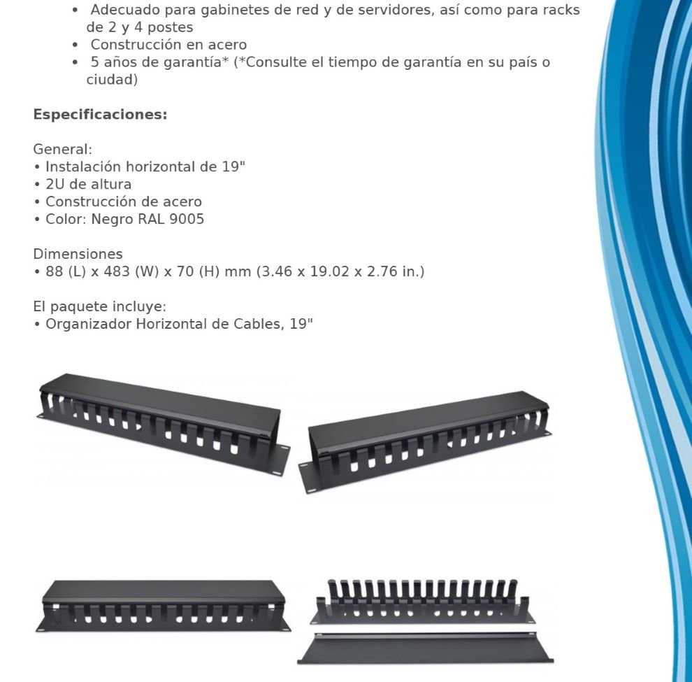 • Adecuado para gabinetes de red y de servidores, así como para racks de 2 y 4 postes