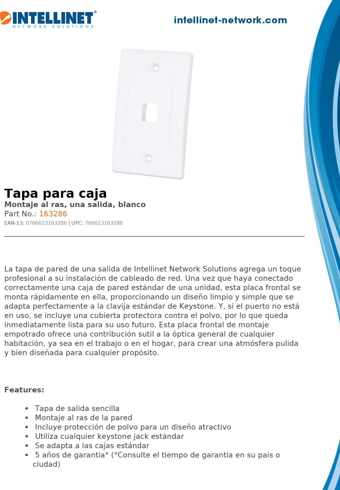 Tapa Para Caja INTELLINET / De Pared / Faceplate Placa / 1 Salida / Blanco