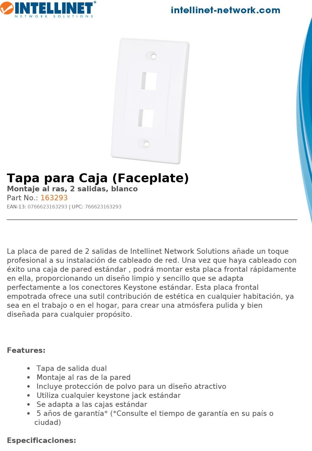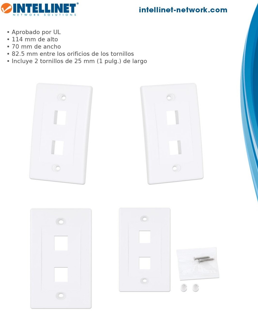 Tapa Para Caja INTELLINET / De Pared / Faceplate Placa / 2 Salidas / Blanco