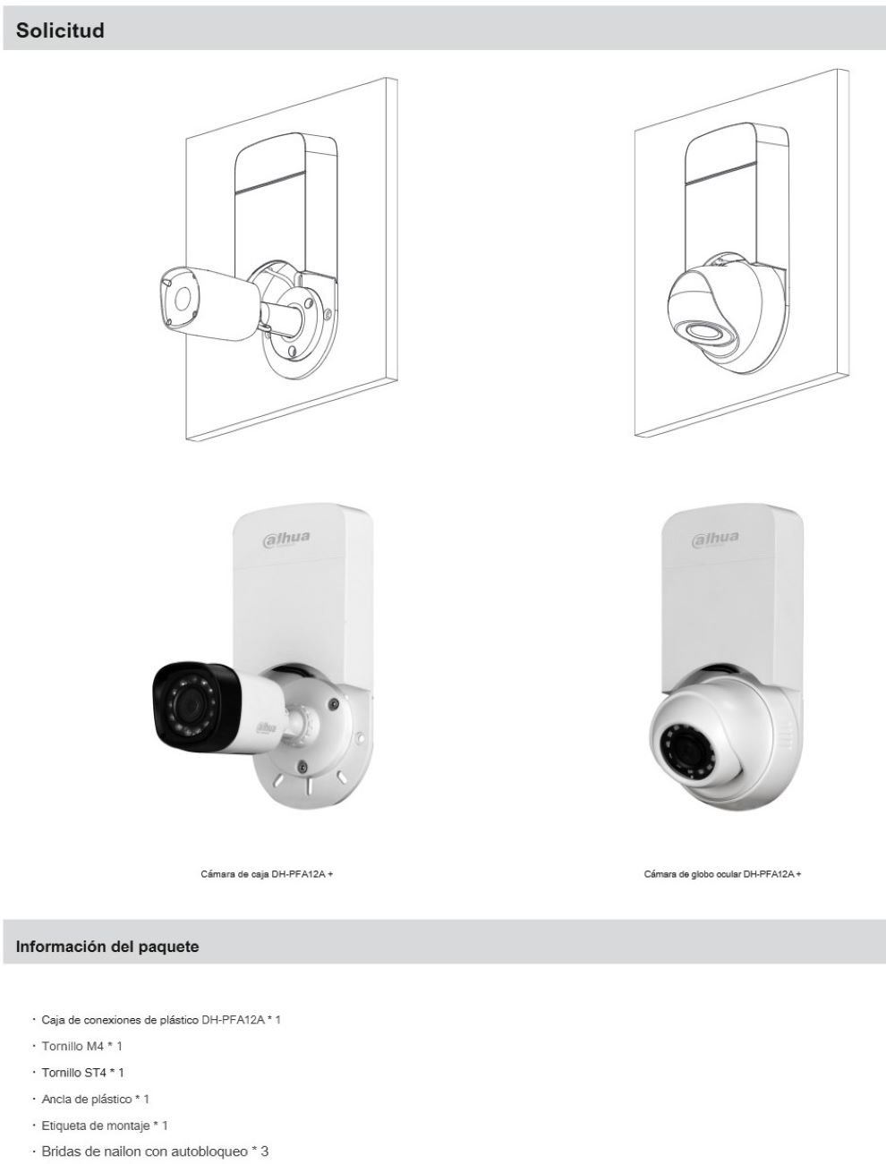 • Compatibilidad: Compatible con cámaras Dahua tipo bullet y domo.