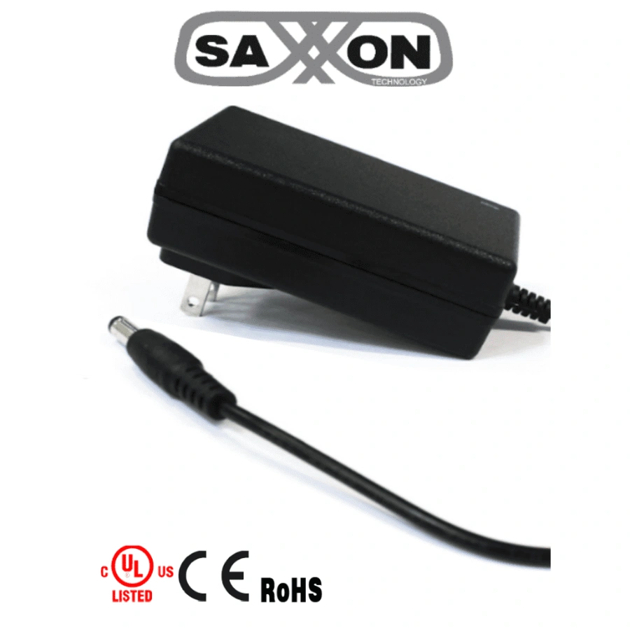 Fuente de Poder Regulada SAXXON / 12V / 3A / Ideal Para Equipos CCTV / Cable 1.20 M / Negro