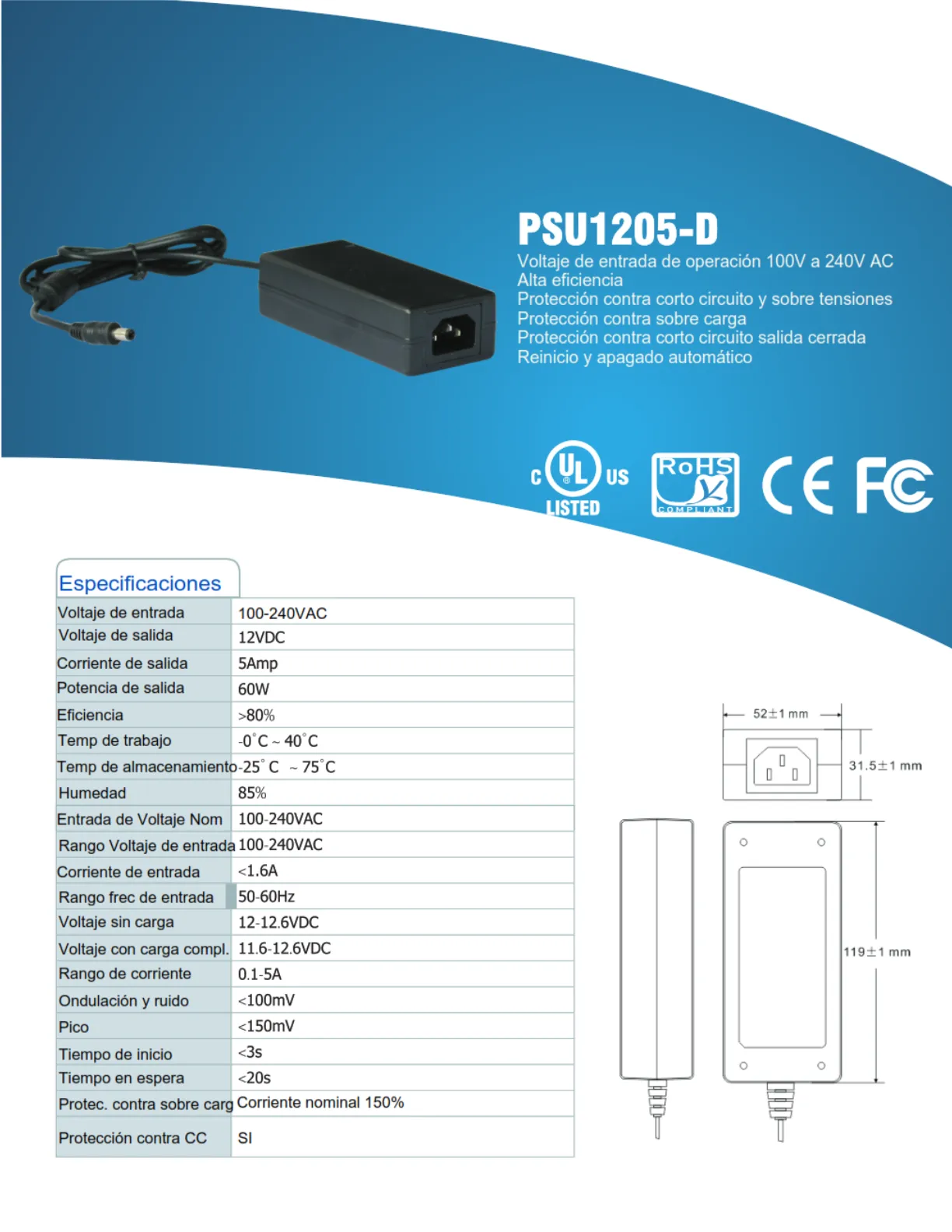 • Corriente de salida 5 Amp