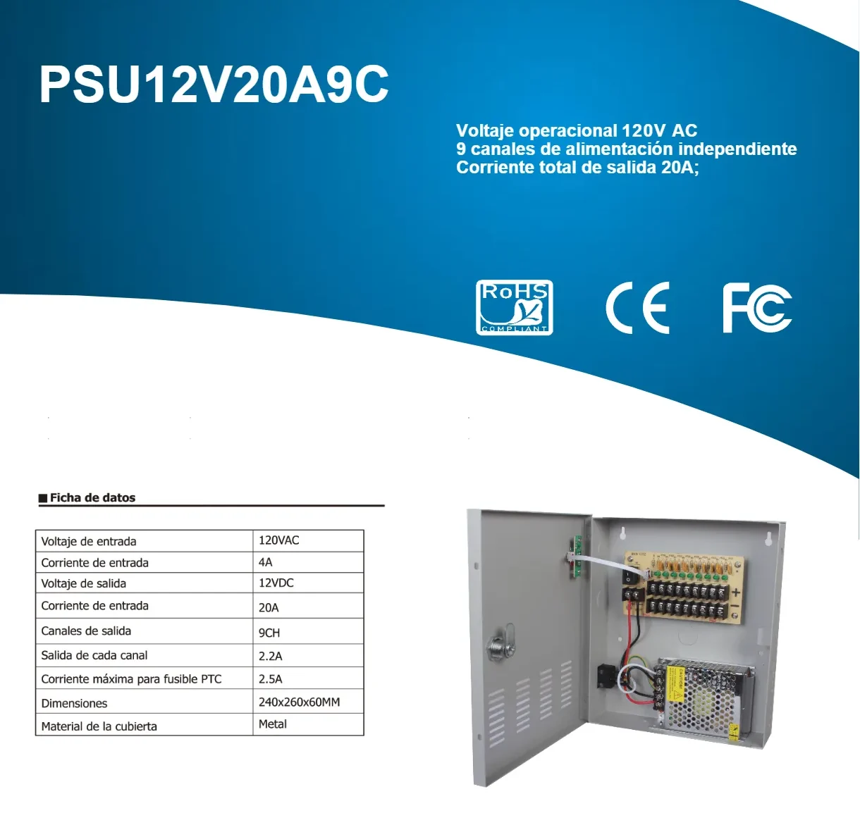 • La fuente modelo PSU12V20A9C más que una fuente es un distribuidor de energía centralizado con carcasa de metal robusta y ranuras para su ventilación sin dejar a un lado la estética.