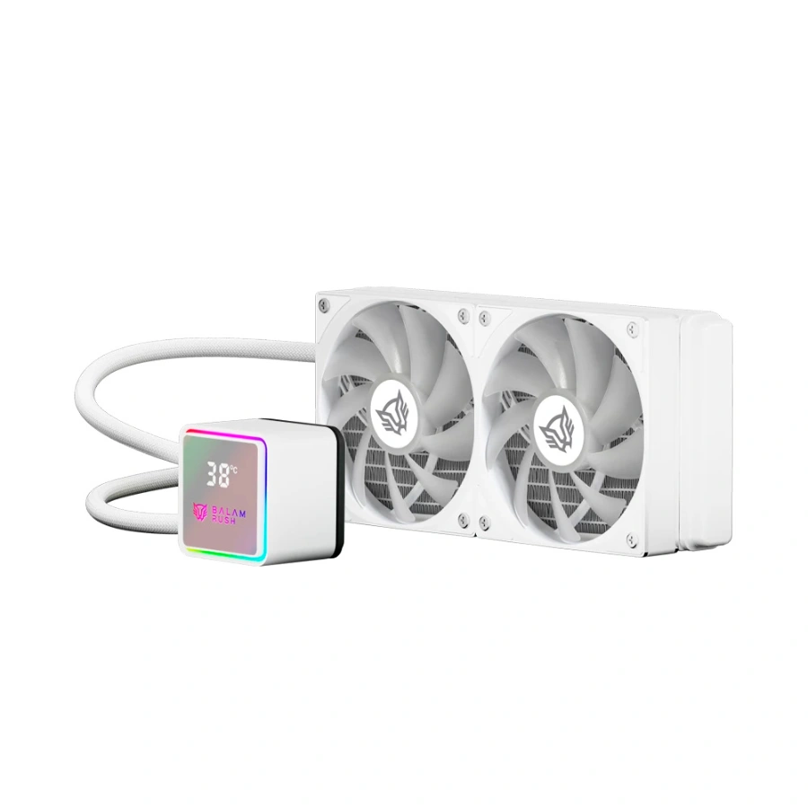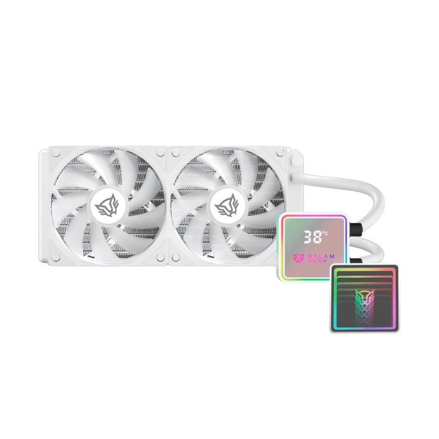 Enfriamiento Liquido AIO BALAM RUSH Cryo Prism 240 Black – 240mm, 2x120mm, Hasta 1800 RPM, 67.5 CFM, 26.9 dBA, 4pin 12V, 3pin 5V – Blanco