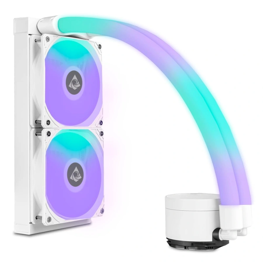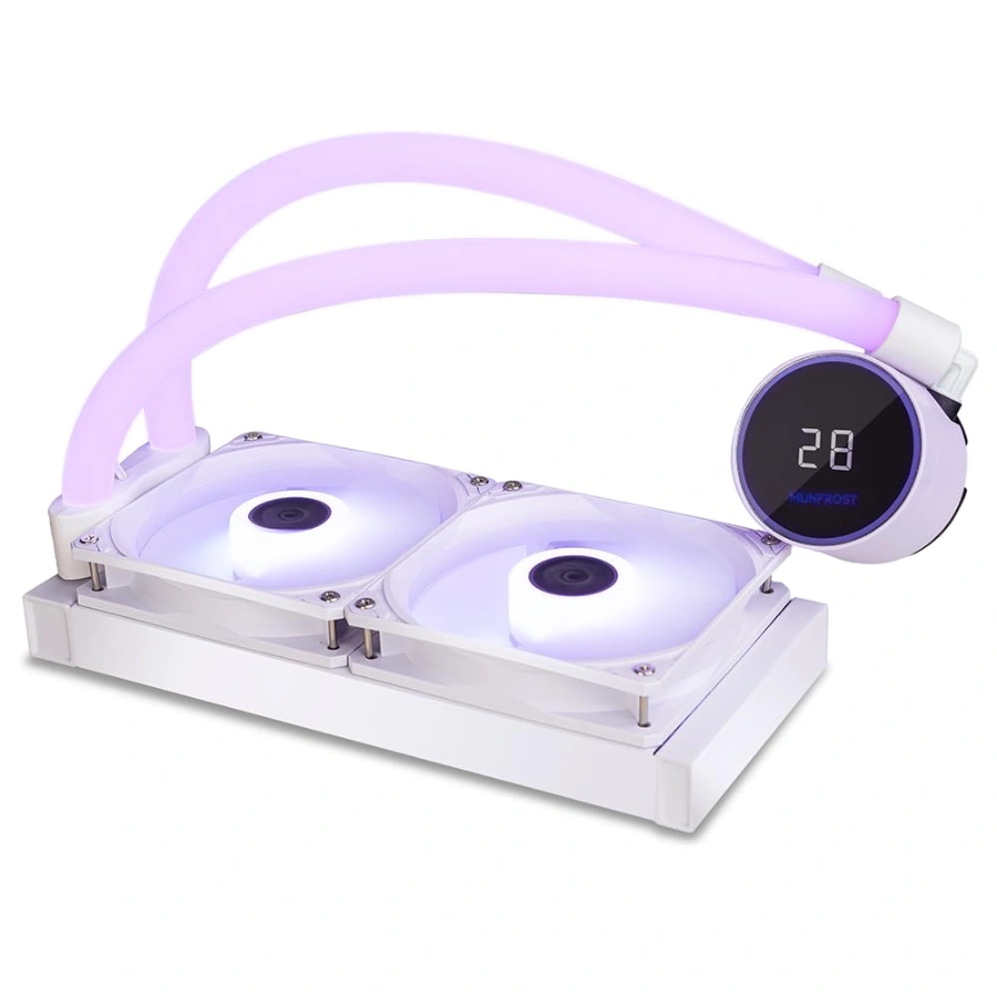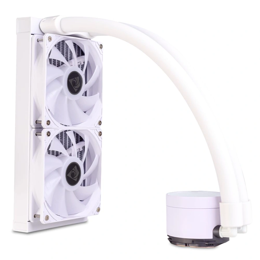Enfriamiento Liquido AIO MUNFROST Moon River 240 ARGB – 240mm, 2x120mm, Hasta 2400 RPM, 76 CFM, 28 dBA, 4pin 12V, 3pin 5V – Blanco