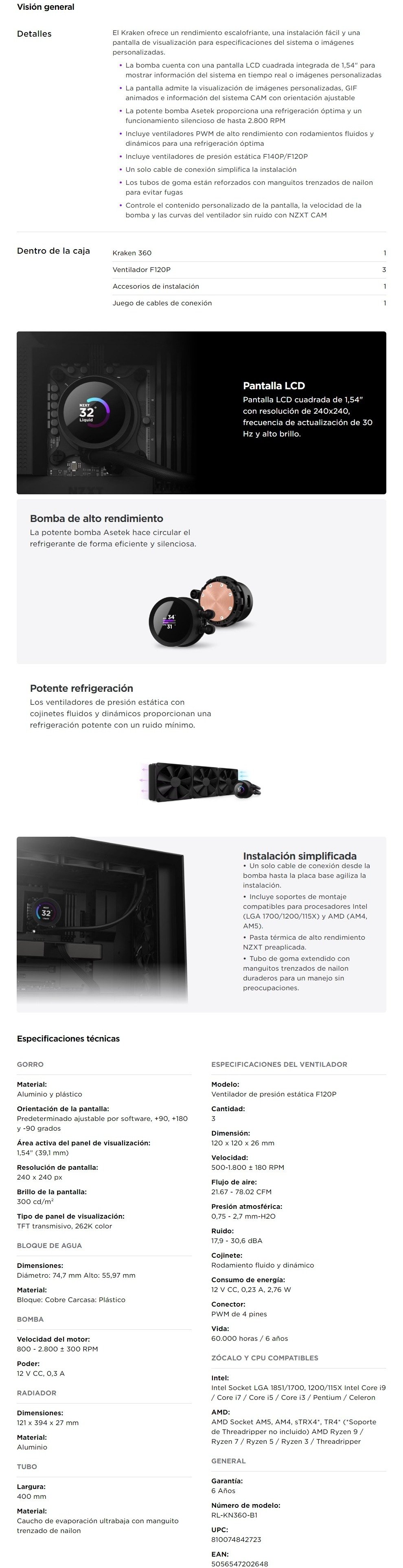 Sé el primero en valorar “Enfriamiento Líquido AIO NZXT Kraken 360 RGB / 360mm / 78.02 CFM, 30,6 dBA / Pantalla LCD 1.54” / Ventiladores serie F / PWM 4 Pines / AMD-INTEL / Negro”