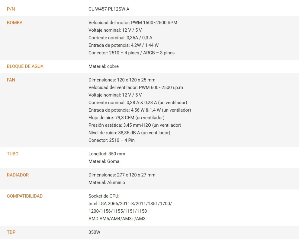 Sé el primero en valorar “Enfriamiento Liquido AIO THERMALTAKE LA240 – 240mm, 2x120mm, Hasta 2500 RPM, 79.3 CFM, 38.35 dBA, 12pin 12V, 3pin 5V – Negro”