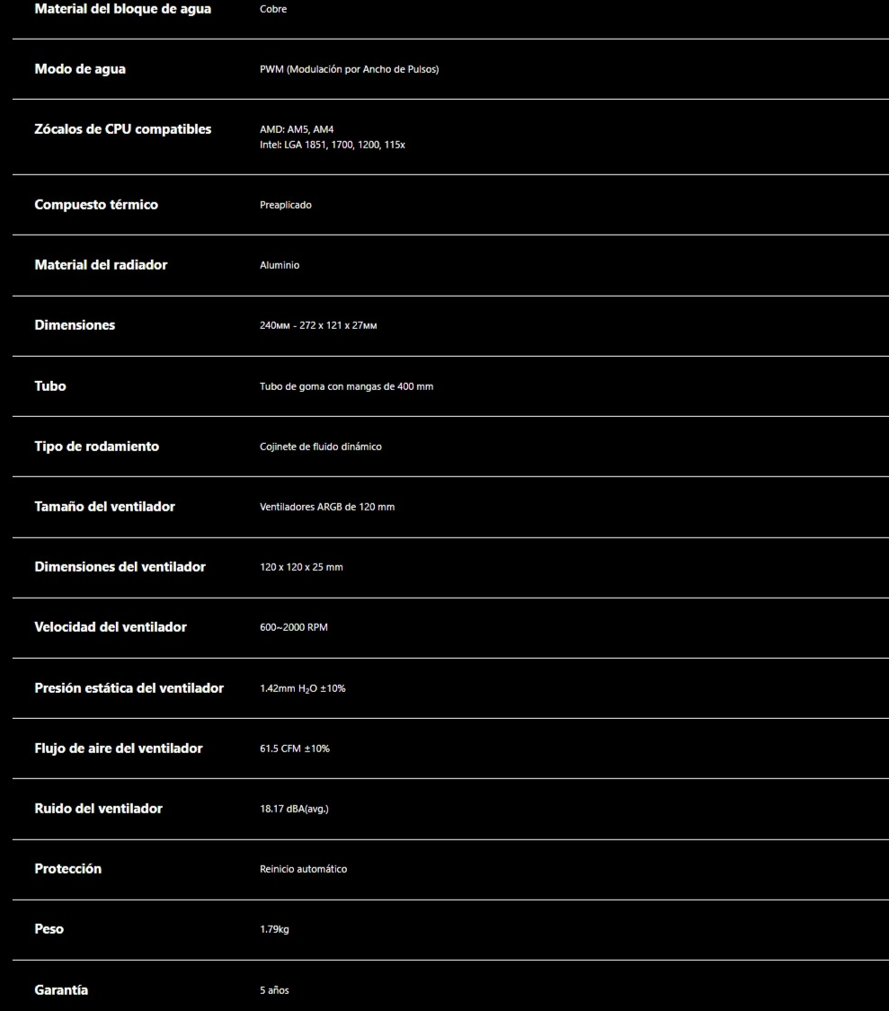 La integración de la bomba y la placa fría de calidad superior reduce los fallos en los puntos de conexión y proporciona un enfriamiento altamente eficaz de forma silenciosa y eficiente. El espejo infinito proporciona un efecto visual fascinante, aún más impresionante gracias a la personalización de la iluminación ARGB.