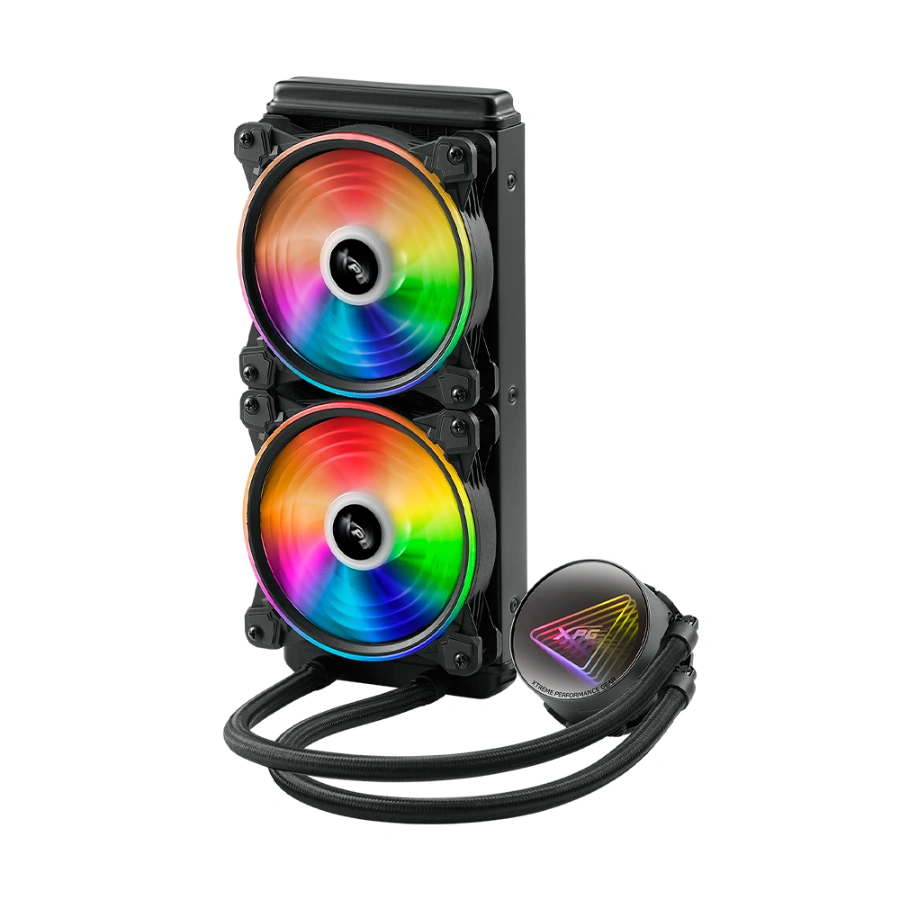 Enfriamiento Liquido AIO XPG LEVANTE X 240 – 240mm, 2x120mm, Hasta 2000 RPM, 61.5 CFM, 18.17 dBA, 4pin 12V, 3pin 5V – Negro