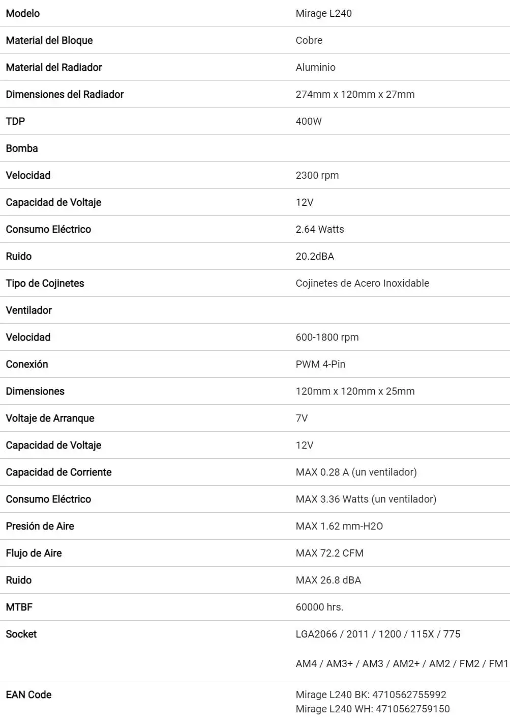 SKU: MIRAGEL240 Categoría: