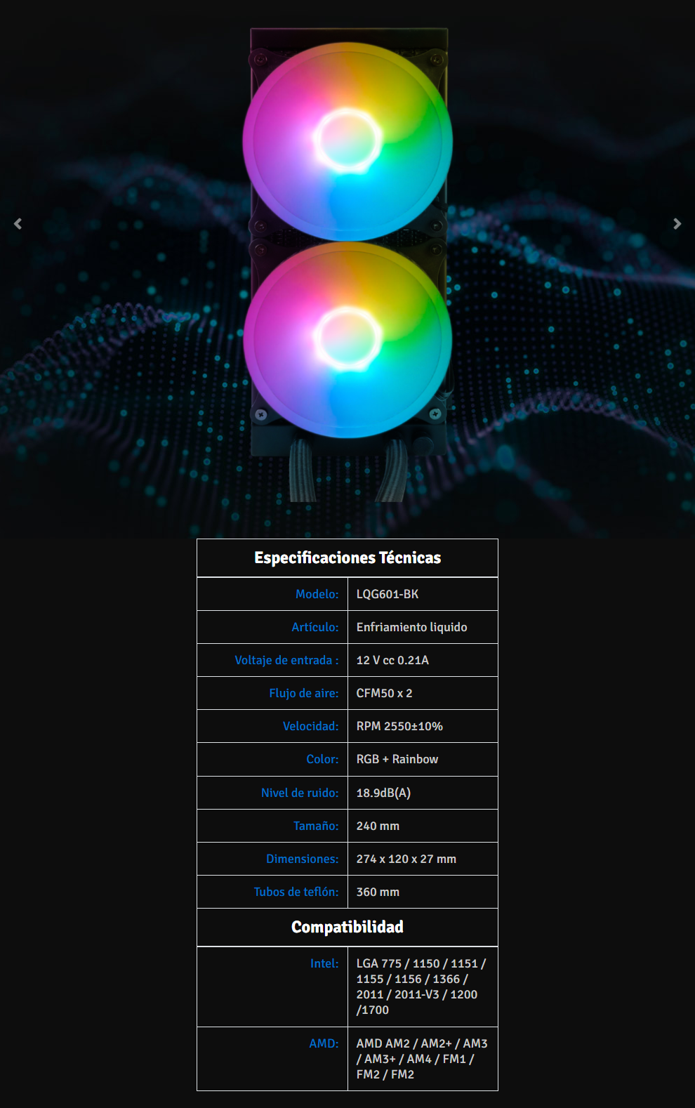 Sistema De Enfriamiento Liquido AIO GAME FACTOR LQG601-BK / 240MM / X2 Vent 120mm / Intel, AMD / Argb / 3 Pines / H. 2550 RPM / 50Cfm / 18.9dBA / Negro