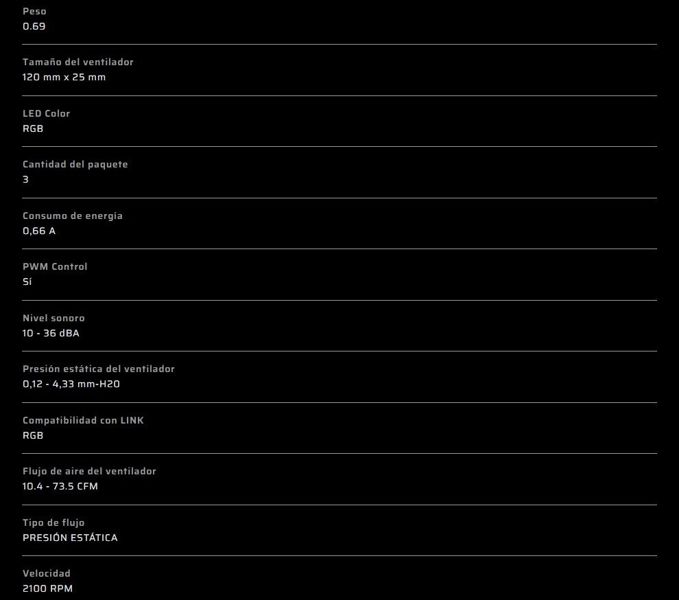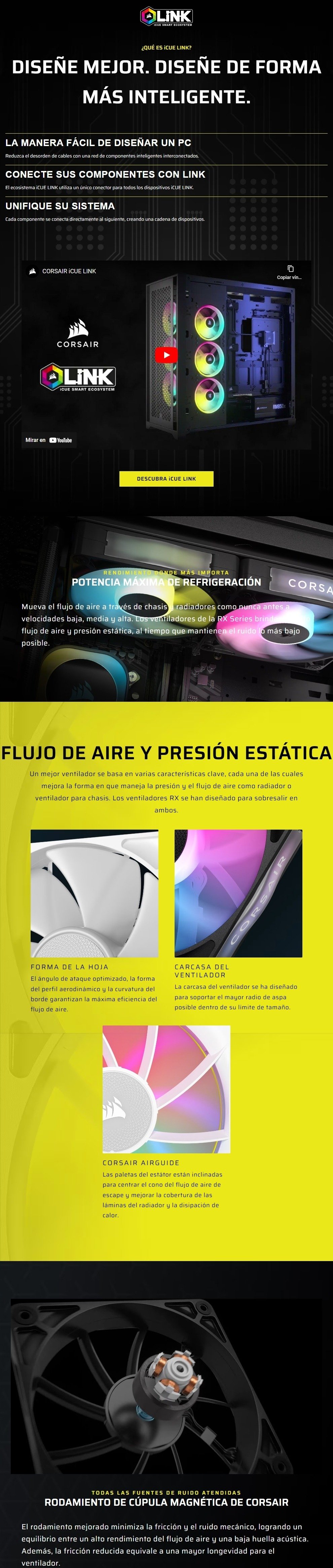 Kit 3 Ventiladores CORSAIR iCUE LINK RX120 RGB / 3 Ventiladores PWM 120mm / 2100 RPM / 10.4-73.5 CFM / 10-36 dbA / Negro