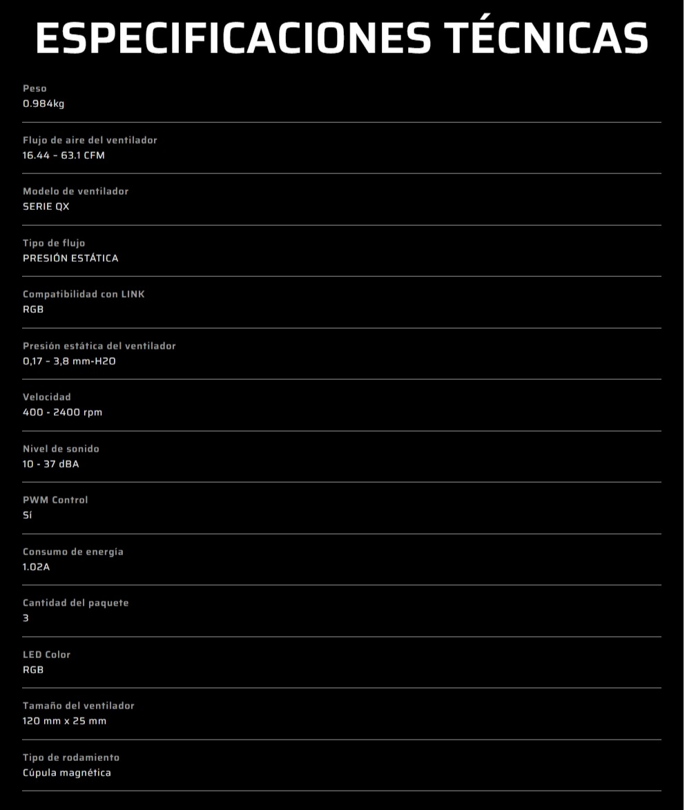 Kit De 3 Ventiladores CORSAIR ICUE LINK QX120 RGB – 3 Fan De 120mm, 400 – 2400 Rpm, 63.1 CFM, 37 dBA, Domo Magnético – Blanco